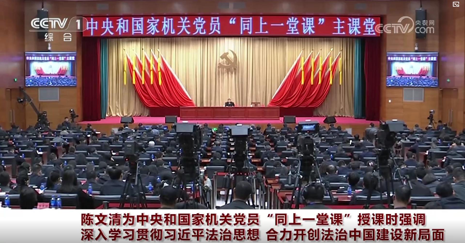 中共中央政治局委员、中央政法委书记陈文清围绕“深入学习贯彻习近平法治思想 合力开创法治中国建设新局面”作专题辅导。陈文清指出,习近平法治思想植根于中华优秀传统法律文化,是马克思主义法治理论中国化时代化的最新成果,是新时代全面依法治国的根本遵循和行动指南。要深入学习贯彻习近平法治思想,更加注重法治与改革、发展、稳定相协同,更加注重保障和促进社会公平正义,善于通过科学立法解决新问题,善于通过严格执法解决现实问题,善于通过公正司法维护公平正义,善于通过全民守法夯实法治根基,全面推进国家各方面工作法治化,合力开创法治中国建设新局面。